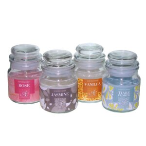 Dišeča sveča v steklenem kozarcu 6x8,5 cm - dišave za sveče, ki so v elegantnem steklenem kozarcu in zagotavljajo dolgo obstojen vonj za sprostitev in ustvarjanje prijetnega vzdušja v prostoru.